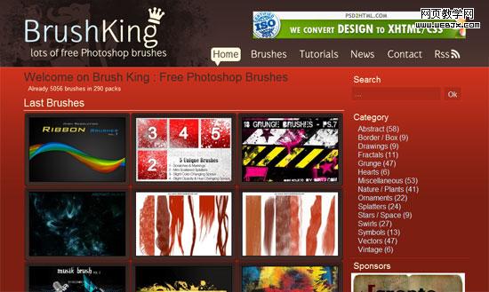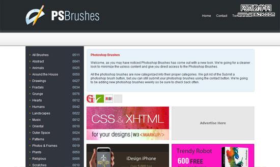 ps brushes.net目前擁有500套筆刷。其獨特之處就是提供每套筆刷內所有筆刷的預覽圖,因此你可以清楚了解到這些筆刷具體樣式以及它們的規格等。ps brushes.net有多個目錄可供選擇,這樣可以使你很快了解全站內容。