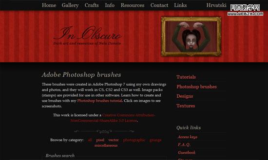 in obscuro提供各類主題的免費筆刷。在“署名-非商業性使用-相同方式共享( creative commons attribution-noncommercial-share alike)”許可范圍內可以使用這些筆刷,因此你可以在許可范圍內免費使用這些主題。這里有大量的筆刷可供選擇,如 photographic brushes 和 grunge brushes。
