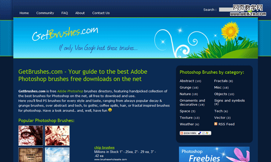 getbrushes網上高品質、可下載的photoshop筆刷指南。top-notch還開設論壇和討論photoshop以及圖形設計相關的話題。