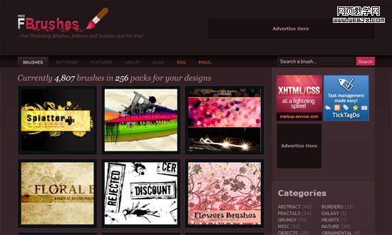 fbrushes現有4000多個獨立筆刷和超過200套的整套筆刷。該站采用獨特的方式對筆刷分類,即根據筆刷的主題,如ornamental 和 splatters。