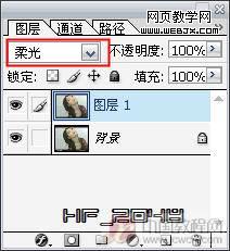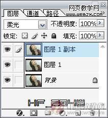 1.打開照片,按ctrl+j復制一層,并把混合模式設為“柔光”,然后再按ctrl+j再復制一層增加效果。(這種方法是數碼照片通病的處理方法,我以前也發過教程的。)
