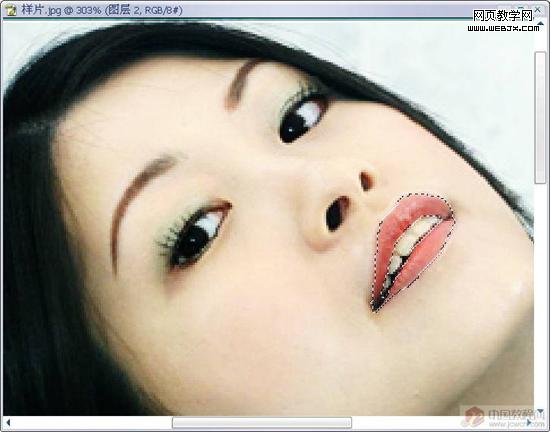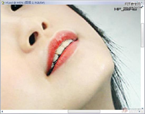 7.現在發現牙齒發黃了,開始我還沒看出,這是在后面看到后補的,所以要去除牙齒的黃色并加亮使牙齒變白。