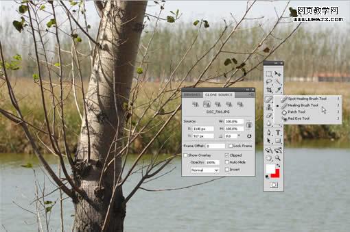 ps cs4中,不但仿制圖章支持五個仿制源,并且修復(fù)畫筆工具也支持了這項功能,你可以配合仿制源面板來使用它。