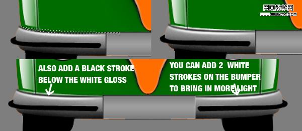 在保險杠上用前面概括的方法加上灰色的光。然后復制到另一邊。