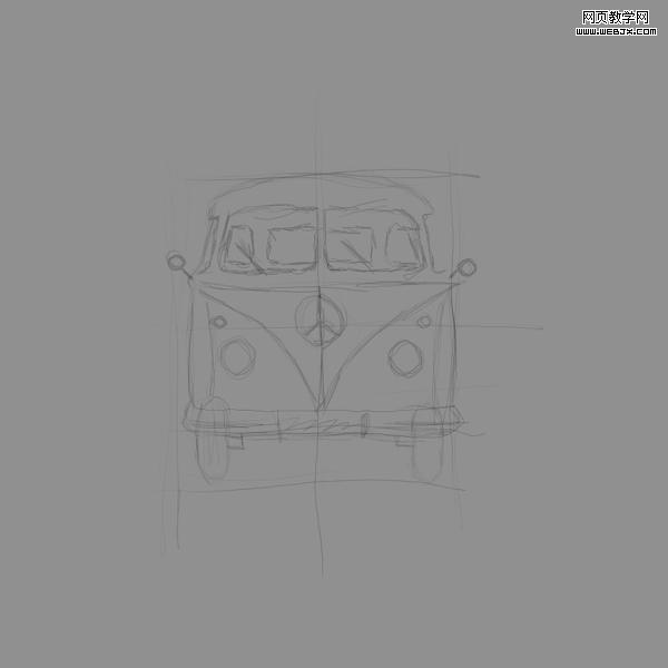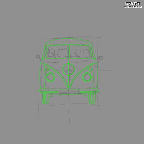 建一個新圖層,使用鋼筆工具(p),沿著粗繪素描的邊緣畫出車的最終形狀。