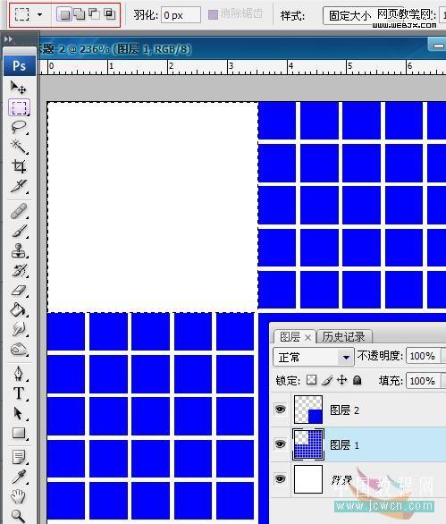 10、新建一層,設置矩形選框工具的屬性,在右下角點一下。