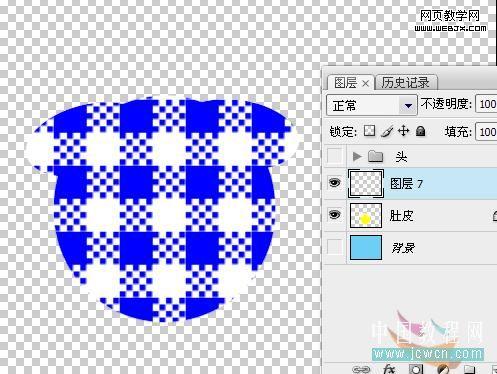 17、合并肚皮和手圖層,添加圖層樣式,使用縮放做出合適的格子衫。