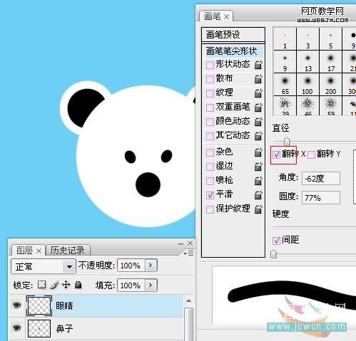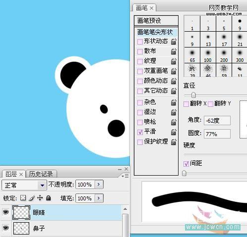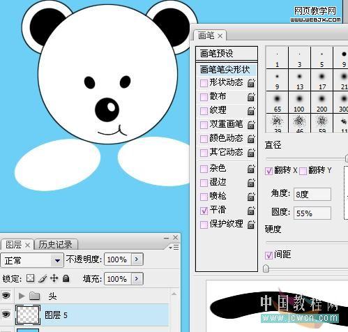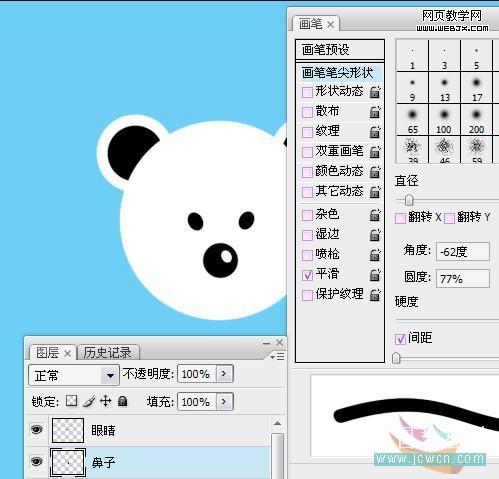 15、分層做以下部分:回到小熊的文檔,設定畫筆的角度和圓度畫上小熊的兩個手。