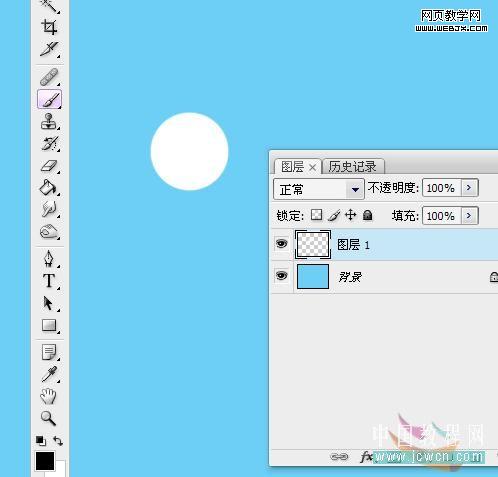 1、先來畫耳朵,白畫筆高硬度,100%圓度,在畫布上點一下。