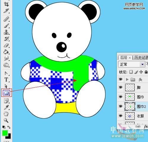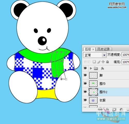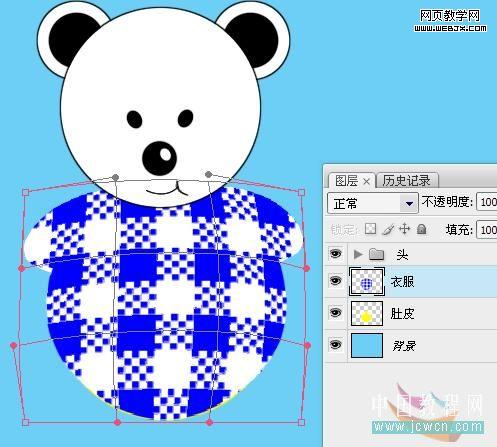 20、對衣服做變形處理,突出小熊胖胖的肚子。