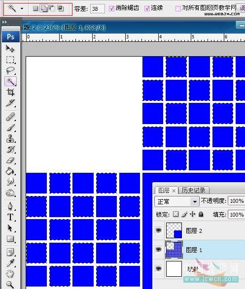 13、用魔棒工具按下圖進行選擇,并del刪除。