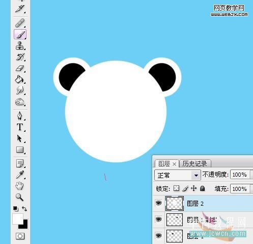 5、再用大號點的白畫筆在新層兩個耳朵之間點一下做小熊的臉。