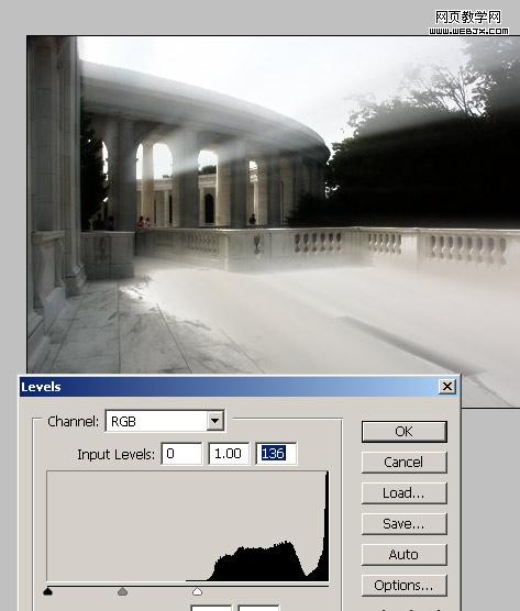 6、選中下面的放射圖層,執(zhí)行ctrl + l 調(diào)整色階,參數(shù)為(0、1.0、136),效果如圖;