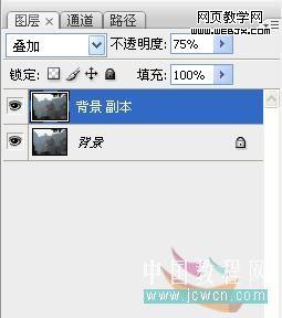 1、打開圖片觀察,圖片有些發灰,復制一層,混合模式疊加,不透明度75%。 |
