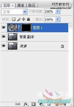 3、將這兩個新建圖層合并,圖層混合模式改為“濾色”,按住alt鍵的同時按添圖層蒙板按鈕,對該圖層添加黑色圖層蒙板; |