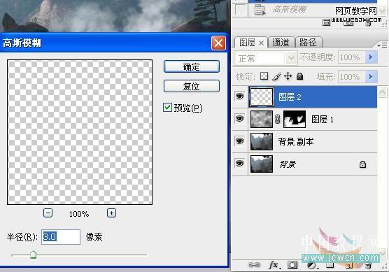 6、對兩個云彩圖層使用濾鏡高斯模糊,模糊半徑根據實際而定。 |