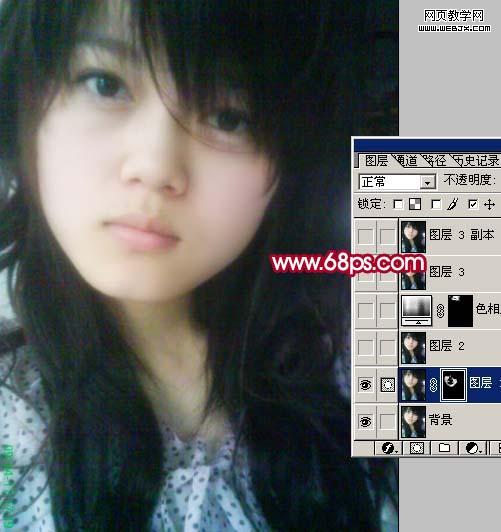 1、打開原圖素材,先來磨皮。按ctrl + j把背景圖層復制一層,對副本執(zhí)行:濾鏡 > 模糊 > 高斯模糊,數(shù)值為4,確定后按住alt鍵加上圖層蒙版,然后用白色畫筆(筆刷選擇柔邊的圓形筆刷,不透明度為:50%左右)涂抹人物臉部有雜色的部分,效果如下圖。