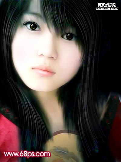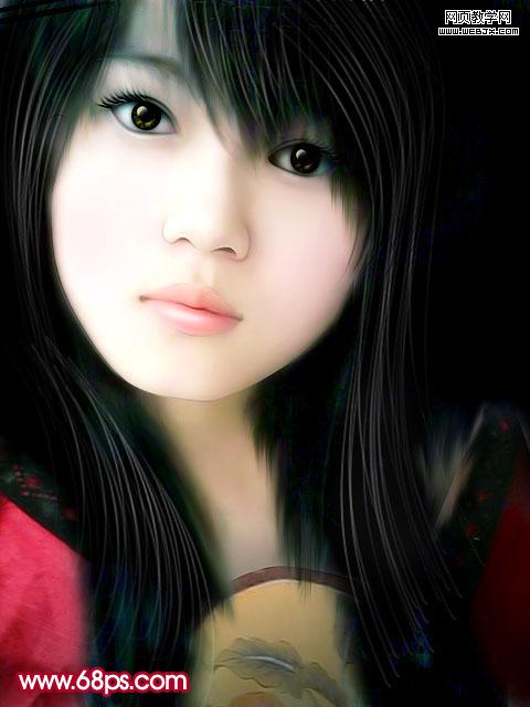14、新建一個圖層,這一步是畫頭發(fā),方法就不介紹了。這方面的教程有很多。