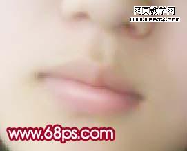 3、嘴巴的處理,選擇涂抹工具,畫筆選擇柔邊的圓形畫筆,壓力位:20%左右,把嘴巴涂均勻一點,如圖4。