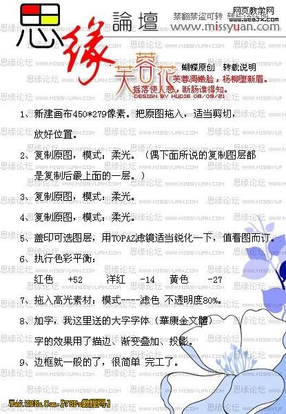 1.按ctr+n新建450*279像素的文檔,把原圖拖入,用裁剪工具適當裁剪,放好位置