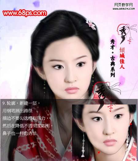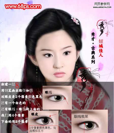 8、用鋼筆畫出路徑如下圖,開始制作雙眼皮,方法如下圖所示。 9、輪廓,用鋼筆勾出路徑,和頭發一樣,但是不要勾模擬壓力如圖。