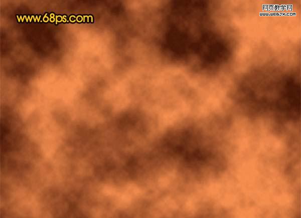 1、新建一個壁紙大小的文件,可以選擇自己屏幕大小(如1024 * 768 像素)。把背景填充黑色。 2、把前景顏色設置為:#f58d4e,背景顏色設置為:#481706,新建一個圖層,執行:濾鏡 > 渲染 > 云彩,確定后按ctrl + alt + f加強一下,效果如圖1。 |