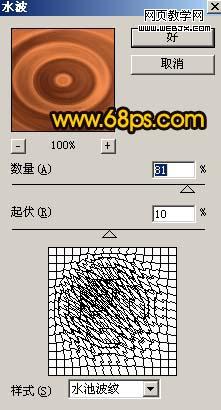 3、執行:濾鏡 > 扭曲 > 水波,參數設置如圖2,效果如圖3。