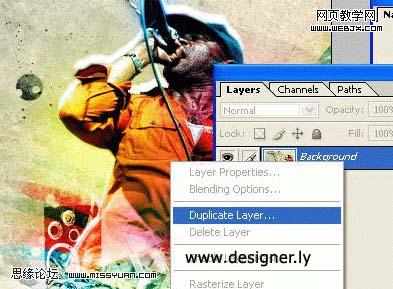 2、打開背景圖,將歌手拖入,調整大小。 3、復制歌手圖層(ctrl+j)。