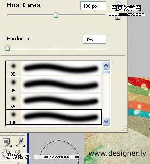 7、紋理圖層模式為濾色。 8、選擇100像素的柔角橡皮擦。 9、擦去一些白色的部分,留下圖案。 10、復制修整好的紋理圖。