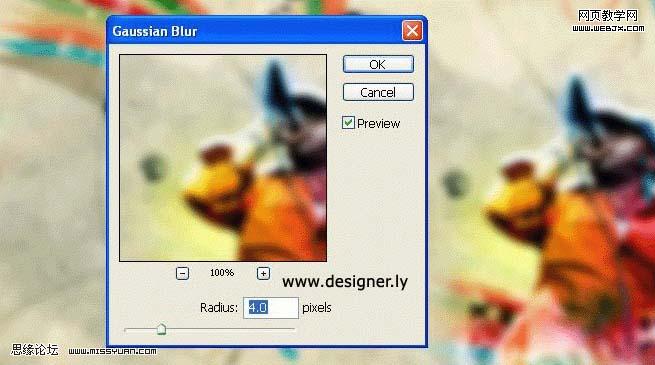 22、復制合并圖層。 23、濾鏡-模糊-高斯模糊。 24、半徑4.0像素。 25、圖層模式為疊加,最后效果如下圖。