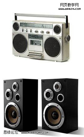 15、復制裝飾器材圖層。 16、用套索工具裁出錄音機,制作步驟與音箱相同。 17、新建一個層(ctrl+shift+n)