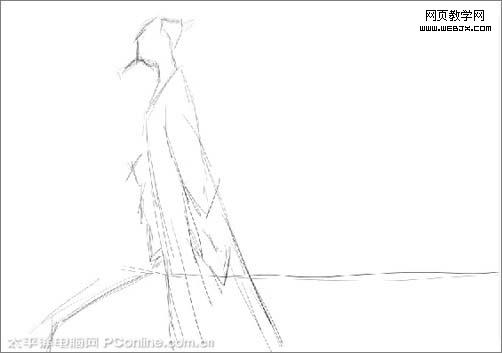 <圖3> 4、按組合鍵ctrl+shift+n創(chuàng)建新圖層并命名為:輪廓,對畫面的輪廓進(jìn)行一步精細(xì)的刻畫,然后單擊“草圖”圖層前面的顯示或隱藏圖層按鈕,效果如圖4所示。