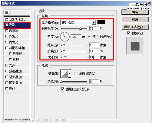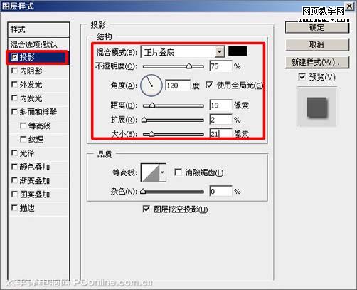 22、雙擊“筷子”圖層,彈出“圖層樣式”,勾選“投景”選項,設(shè)置參數(shù)如圖32所示;效果如圖33所示。