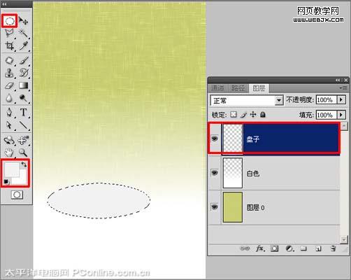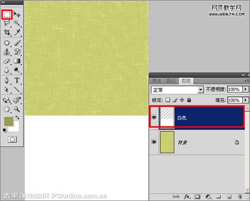 <圖4> 4、執(zhí)行菜單:“圖層”/“新建”/“新建圖層”(快捷鍵ctrl+shift+n),新建圖層并命名為“白色”,使用矩形選框工具,框出矩形選區(qū),按ctrl+delete鍵填充白色,按ctrl+d取消選區(qū),如圖5所示。