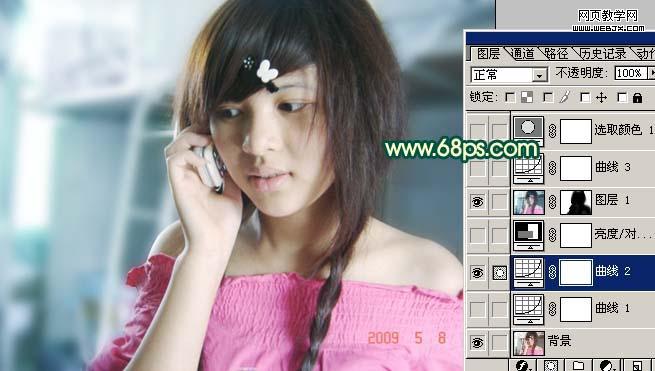 4、再在曲線調整圖層上面創(chuàng)建亮度/對比度調整圖層,參數(shù)設置如圖8,效果如圖9。