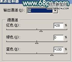 9、創建通道混合器調整圖層,對藍色進行調整,參數設置如圖15,效果如圖16。 |