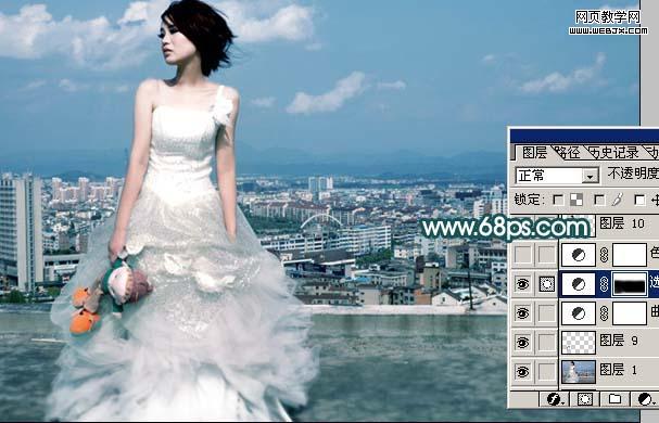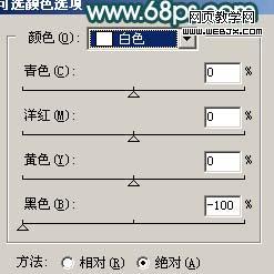 2、創建可選顏色調整圖層,對白色進行調整,參數設置如圖3,確定后只保留天空部分,其它部分用黑色畫筆擦掉,如圖4。
