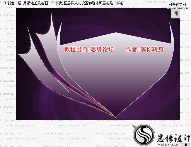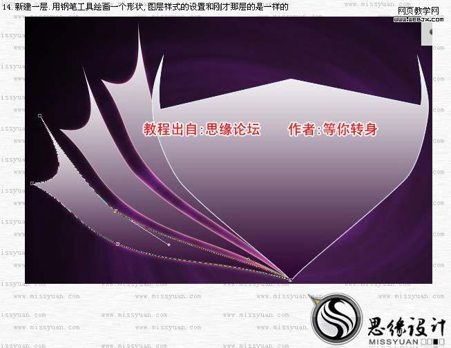 8、圖層樣式描邊設置。 9、新建一個圖層,用鋼筆工具繪畫一個下圖所示的路徑。注意好圖層的層次。 10、設置圖層樣式:外發光。