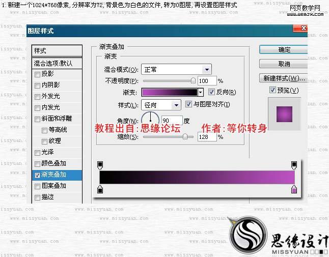 1、新建一個1024 * 768像素的文件,分辨率為:72,背景色為白色的文件,然后雙擊背脊圖層解鎖,然后再雙擊調出圖層樣式,選擇漸變疊加,顏色設置如下圖。 |