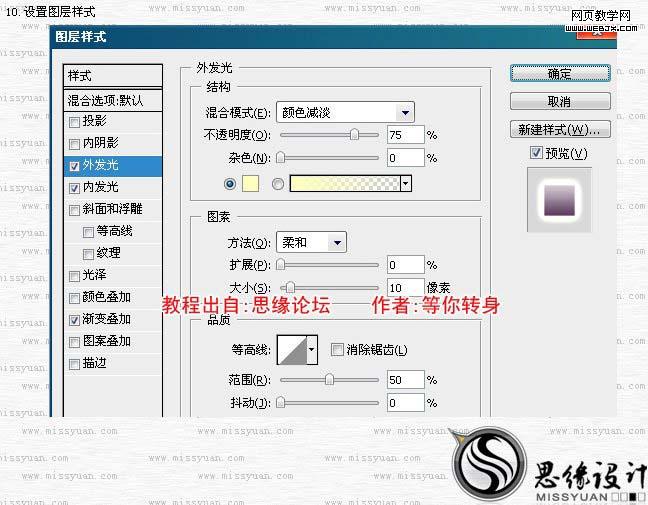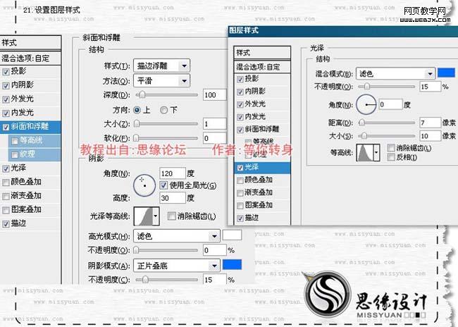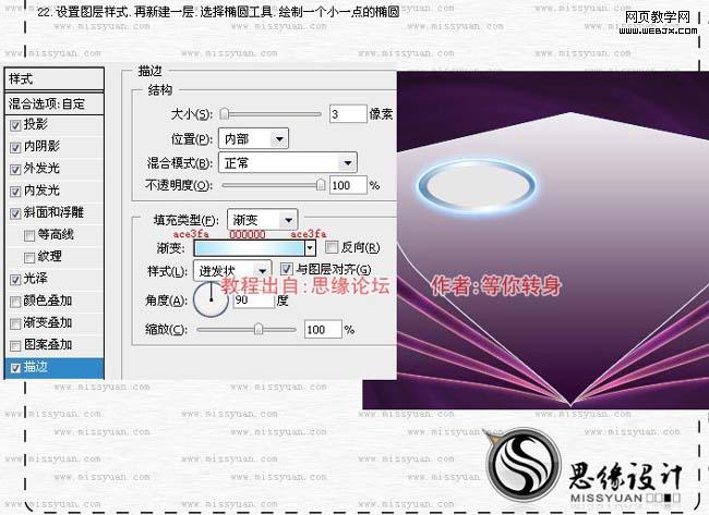 20、圖層樣式:外發光,內發光。 21、圖層樣式:斜面和浮雕,光澤。 22、圖層樣式:斜面和浮雕,描邊。確定后新建一個圖層選擇橢圓選框工具繪制一個小一點的拖延填充灰白色色。