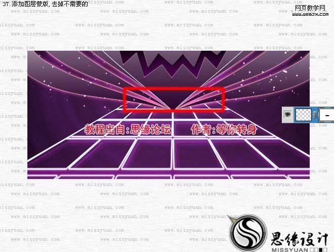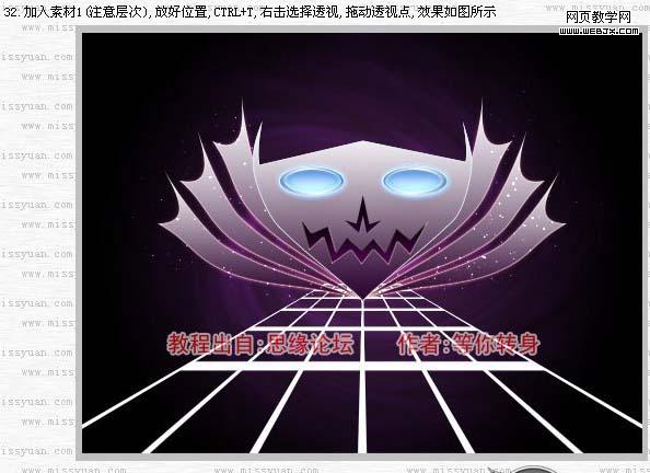 32、打開下圖所示的圖層用魔術棒把白色格子選出來,復制進來,按ctrl + t變形,右鍵選擇透視,拖動透視點,效果如下圖。 33、設置圖層樣式:混合選項,投影。 34、設置圖層樣式:內陰影,外發光。