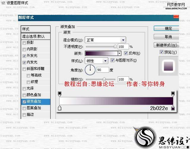 11、設置圖層樣式:內發光。 12、設置圖層樣式:漸變疊加。 13、新建一個圖層,用鋼筆工具勾出下圖所示的路徑,然后把剛才上一步的圖層樣式粘貼進來。
