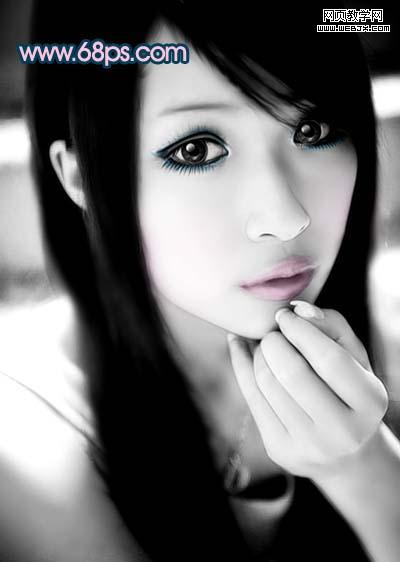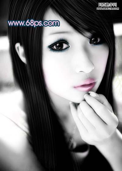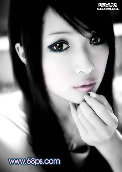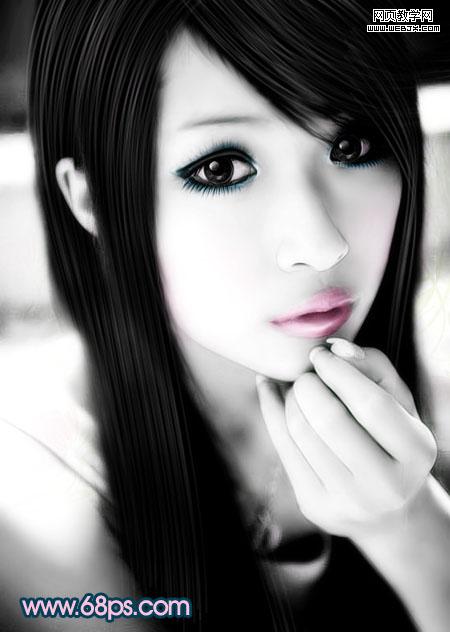 <圖17> 14、新建一個圖層,給人物畫上淡淡的白色發絲(方法先用鋼筆勾出路徑,然后右鍵畫筆描邊,加上圖層蒙版擦掉不需要的部分即可)。效果如圖18。