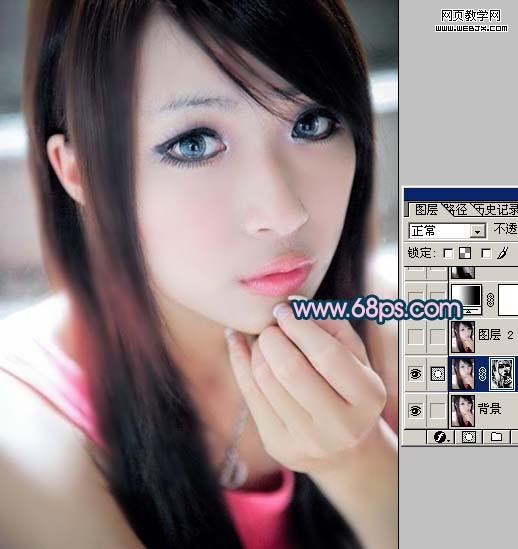 10、同樣的方法給人物加上口紅及腮紅。顏色可以自己選擇。