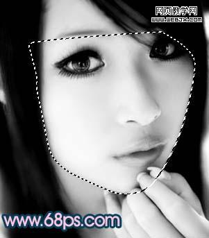 <圖7> 6、新建一個圖層,用鋼筆工具摳出臉部的輪廓,如圖8,轉為選區后執行:編輯 > 描邊,顏色為黑色,大小為2像素。確定后把圖層不透明度改為:10%,加上圖層蒙版用黑色畫筆擦掉多余的部分,如圖9。