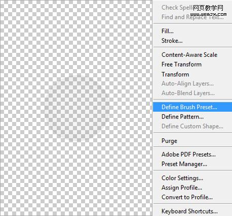 8、創(chuàng)建新畫布,背景設(shè)為黑色。創(chuàng)建新圖層,使用橢圓選框工具建立一個(gè)圓形選區(qū),并用白色填充選區(qū),選擇橡皮擦工具,設(shè)置略小于之前白色圓的柔角筆刷,在圓的中間點(diǎn)擊鼠標(biāo)左鍵若干下,得到如下效果即可。 9、隱藏黑色背景層,選擇白色圓形層,圖像 >> 調(diào)整 >> 反相,利用矩形選框框選該圓形,編輯 >> 定義筆刷。 10、新建圖層,選擇筆刷工具,找到之前自定義的筆刷,打開筆刷設(shè)置窗口,對筆刷的形狀動態(tài)和散布兩項(xiàng)進(jìn)行設(shè)置。其中大小抖動設(shè)為100%,散布設(shè)為1000%。