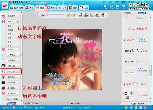 還可以添加上動態(tài)文字呢,在飾品里面就有哦。(*^__^*)嘻嘻……