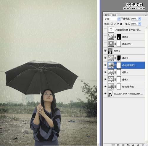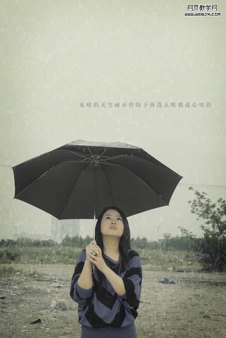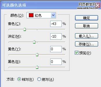 5、給照片裝飾雨絲,制作方法請參考教程:ps制作雨絲的方法。 6、創建可選顏色調整圖層,對紅色及黃色進行調整,參數設置如下圖。