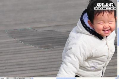 1、觀察照片,最有可能出現大面積仿制源的位置應該是在左側,但陰影造成了一些麻煩。首先使用“多邊形套索工具”粗略選擇左側陰影,靠近衣服的地方要仔細一些。如圖3所示。 |
