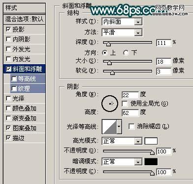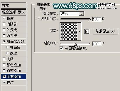 <圖3> 4、圖案疊加參數設置,圖案為ps自帶圖案,如果沒有選擇復位圖案即可。